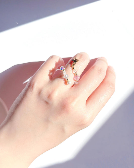 天然水晶 14K包金 & 925純銀 彈性戒指