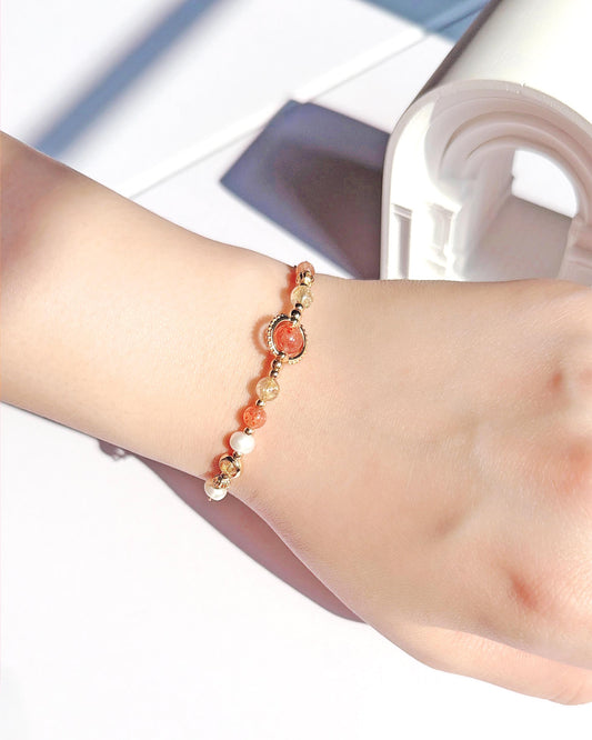 金太陽石金髮晶天然淡水珍珠14K包金手鍊