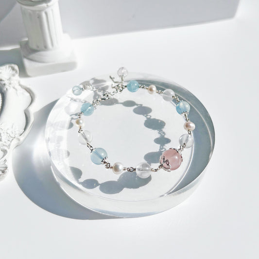 粉晶月光石海藍寶天然淡水珍珠S925純銀手鍊定價 從 HK$420.00 起定價單價 / 每-