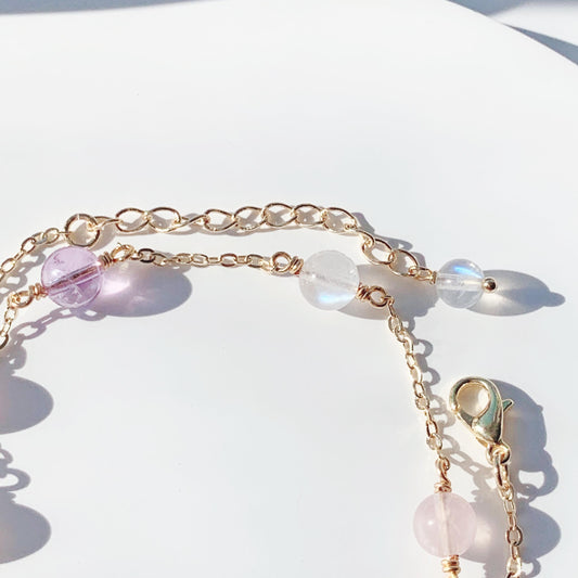 紫水晶粉晶月光石14k包金項鍊&手鍊兩用鍊定價 從 HK$399.00 起定價單價 / 每-