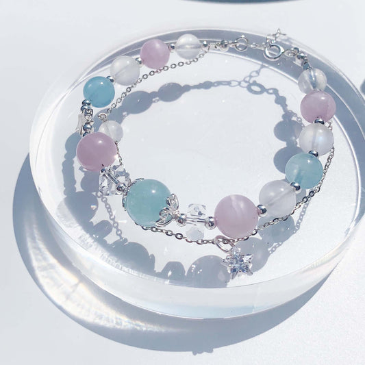 海藍寶紫鋰輝月光石白水晶925純銀雙層手鍊定價 從 HK$470.00 起定價單價 / 每