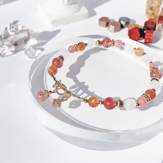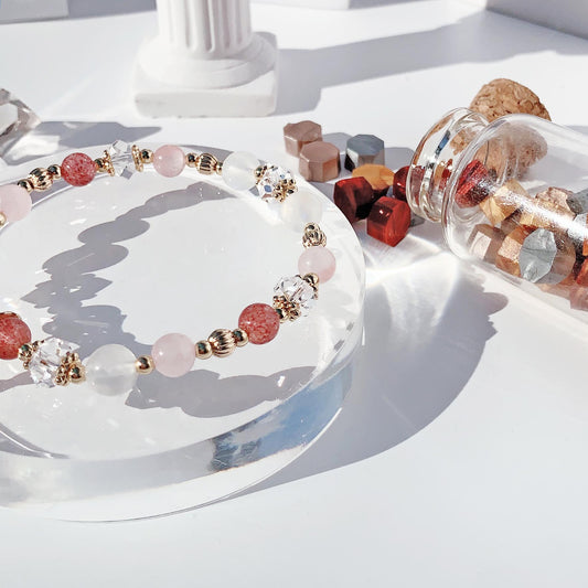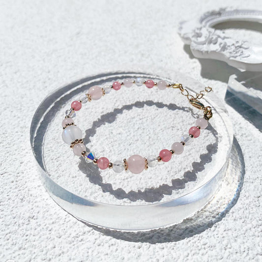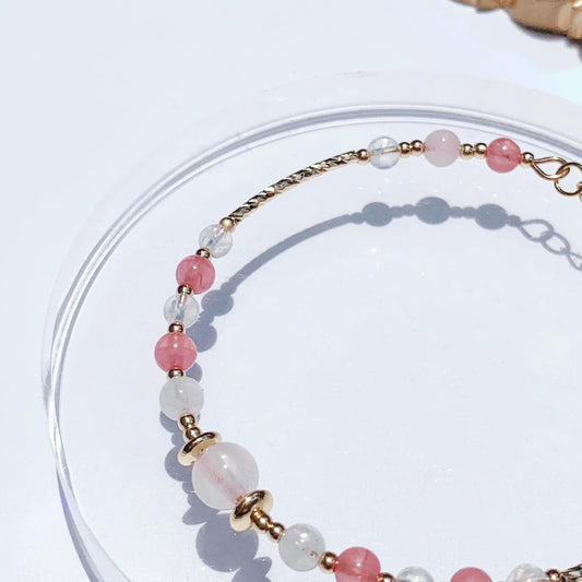 草莓晶粉晶月光石白水晶14k包金手鍊定價 從 HK$366.00 起定價單價 / 每-