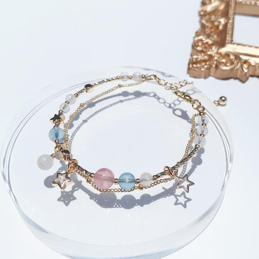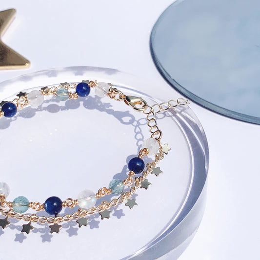 月光石藍磷灰藍晶石14K包金雙層手鍊定價 從 HK$393.00 起定價單價 / 每-
