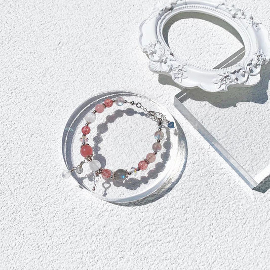 草莓晶粉晶月光石拉長石925純銀手鍊定價 從 HK$380.00 起定價單價 / 每-