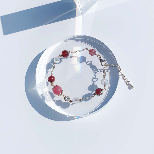紅石榴石粉晶草莓晶月光石925純銀手鍊定價 從 HK$378.00 起定價單價 / 每-