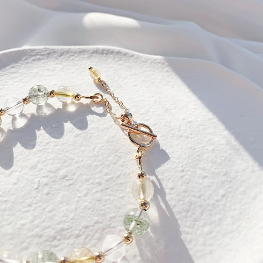 綠幽靈黃水晶金髮晶14K包金手鍊