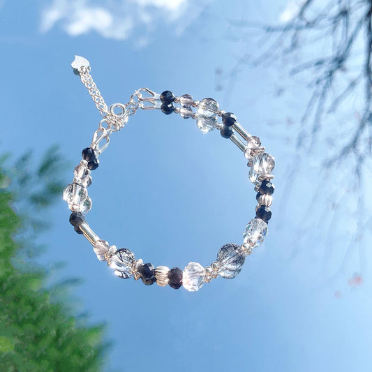 黑髮晶黑曜石白水晶S925純銀手鍊