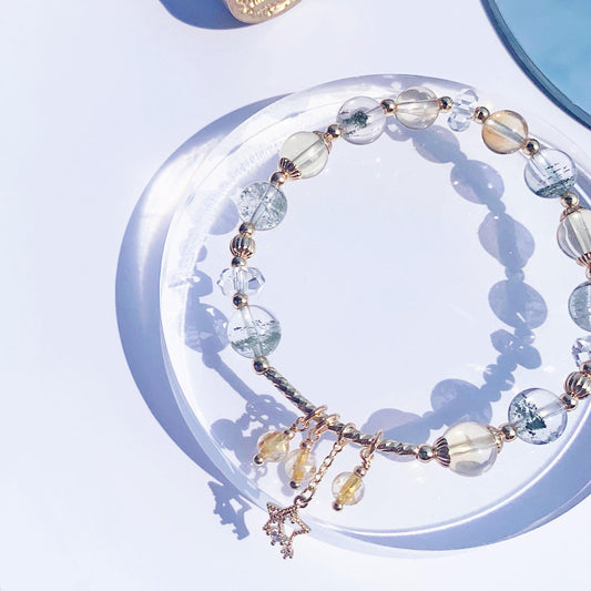綠幽靈黃水晶金髮晶14K包金手鍊