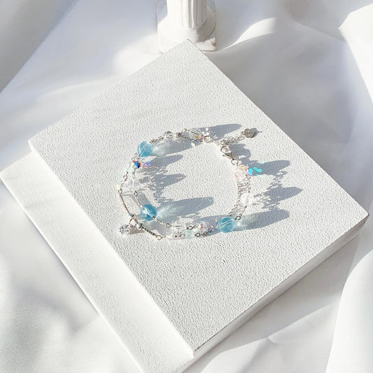 鑽切海藍寶藍玉髓白水晶月光石S925純銀手鍊