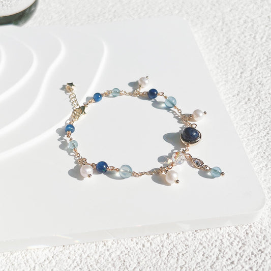 海藍寶藍磷灰坦桑石鑽切白水晶葡萄石「星幕」 S925純銀手鍊定價 從 HK$410.00 起定價單價 / 每-