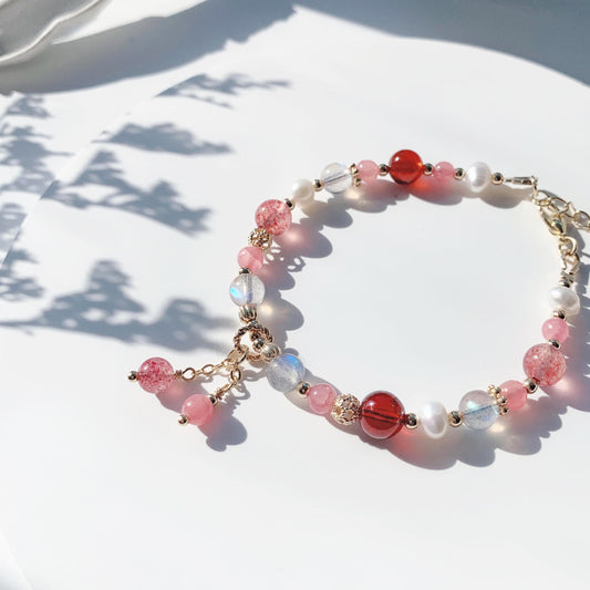 拉長石草莓晶橙紅石榴石紅紋石淡水珍珠14k包金手鍊定價 從 HK$378.00 起定價單價 / 每-