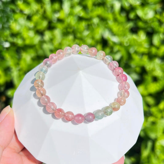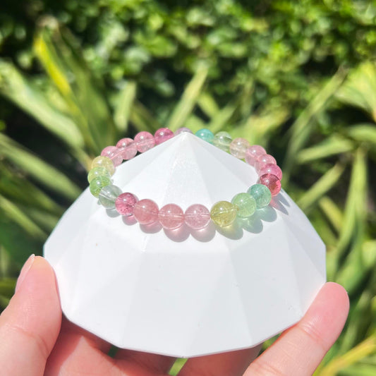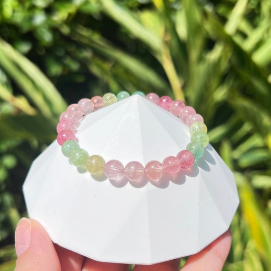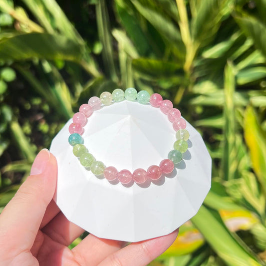 彩虹糖果西瓜碧璽原珠串手鍊|一圖一物