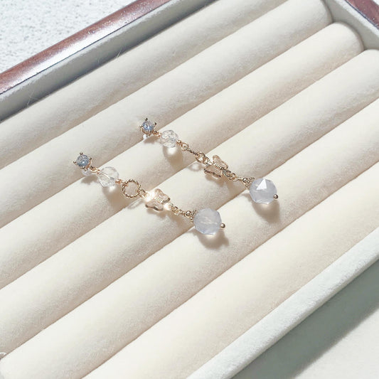 鑽切白水晶月光石托帕石海藍寶藍磷灰14K包金耳環