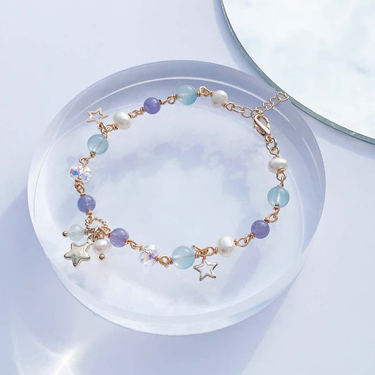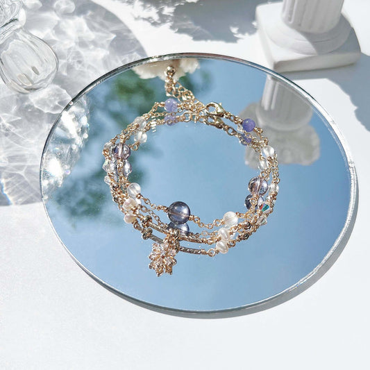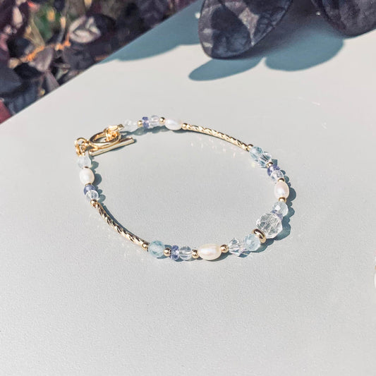 堇青石紫水晶月光石坦桑石淡水珍珠14K包金手鏈