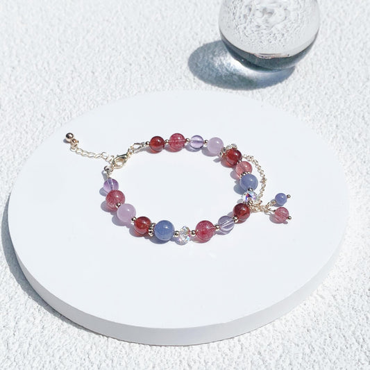 坦桑石橙紅石榴石紫鋰輝紫水晶草莓晶14k包金手鍊