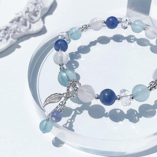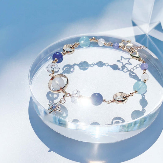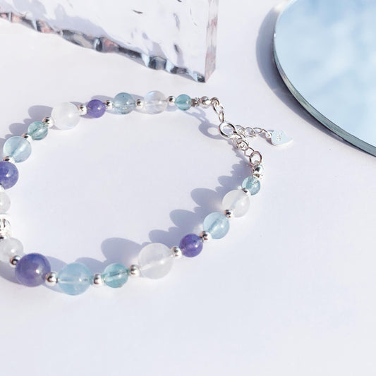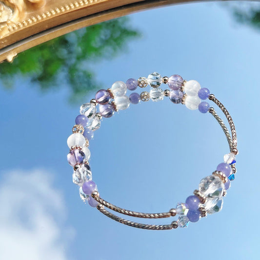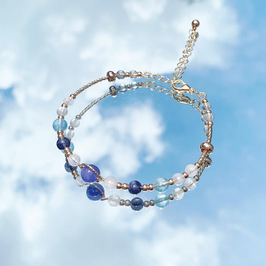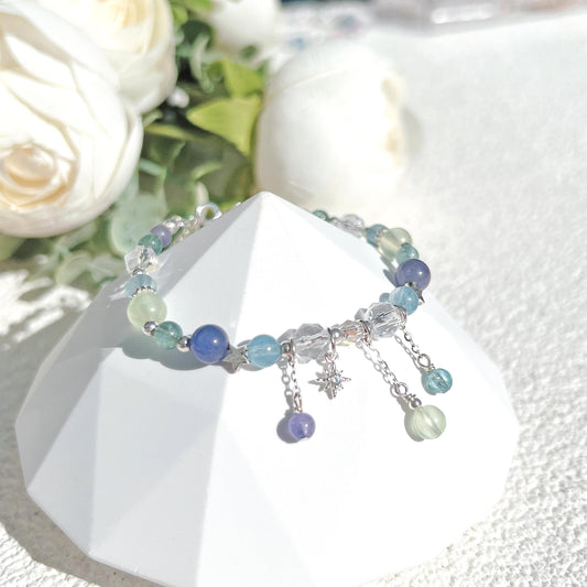 海藍寶藍磷灰坦桑石鑽切白水晶葡萄石「星幕」 S925純銀手鍊