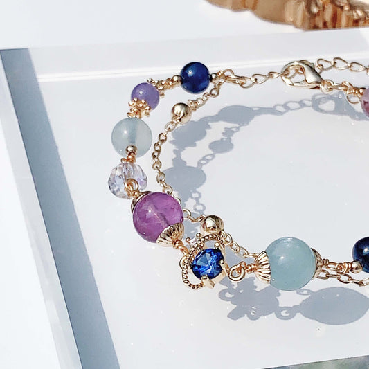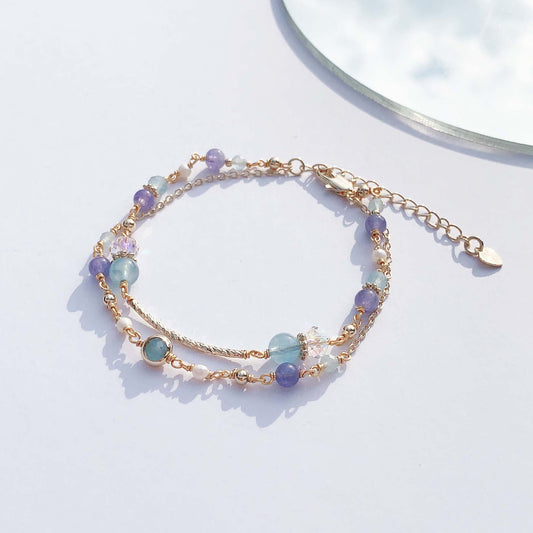 坦桑石堇青石紫水晶海藍寶雙層14k包金手鍊