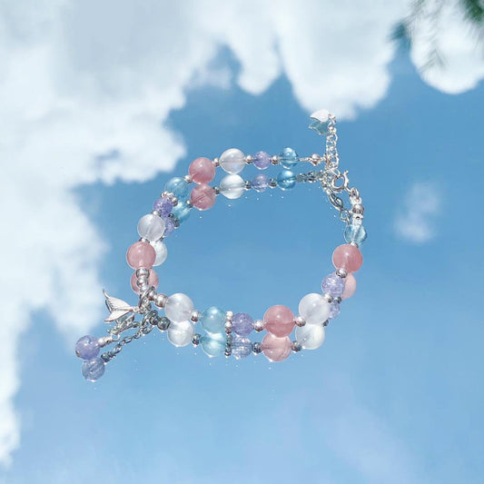坦桑石粉晶海藍寶月光石925純銀手鍊