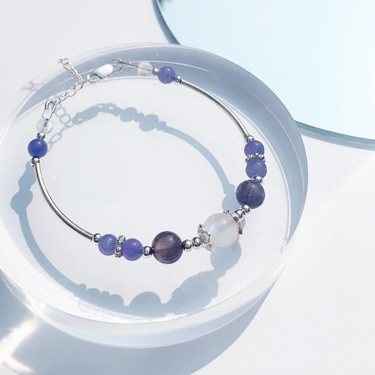 坦桑石海藍寶藍磷灰月光石S925純銀手鍊