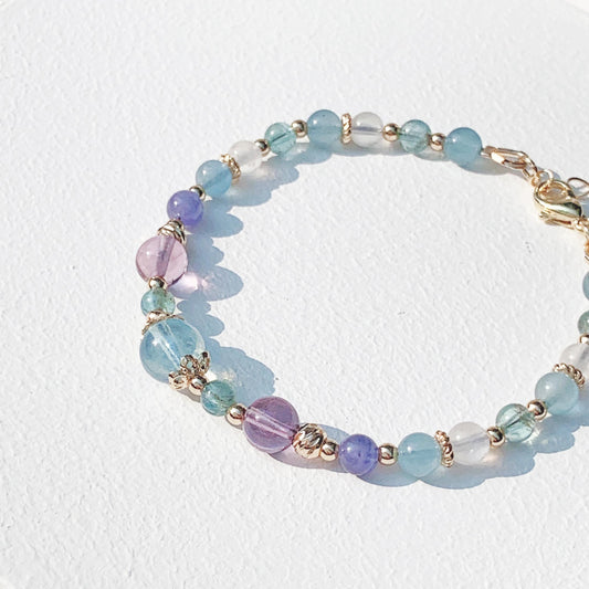 海藍寶藍磷灰紫水晶坦桑石月光石14K包金手鍊