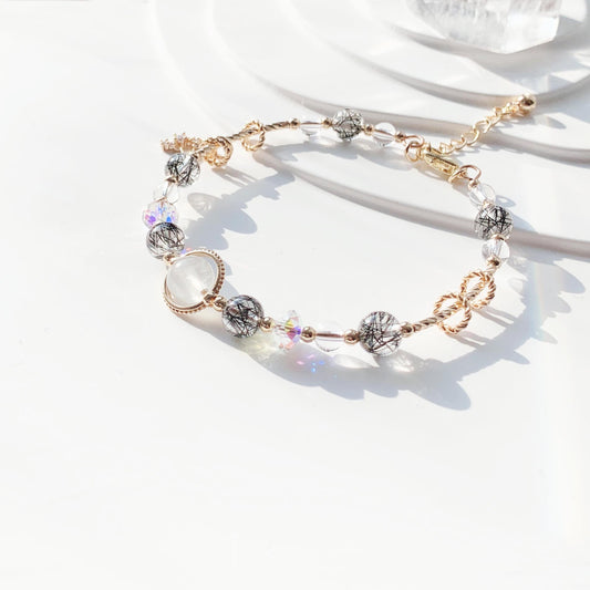 黑髮晶月光石白水晶14k包金手環定價 從 HK$348.00 起定價單價 / 每-