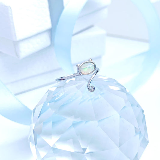 蛋白石歐泊 925純銀貓咪戒指