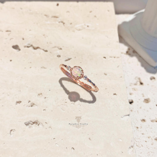 蛋白石歐泊 玫瑰金戒指