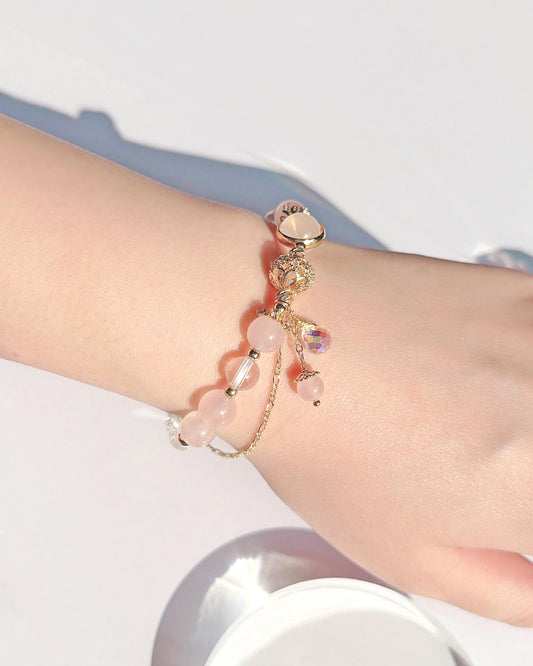 粉晶草莓晶月光石白水晶S925純銀手鍊