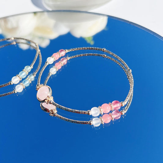 Rose Quartz Strawberry Quartz Moonstone White Crystal S925 Sterling Silver BraceletRegular price From HK$462.00Regular priceUnit price / per-