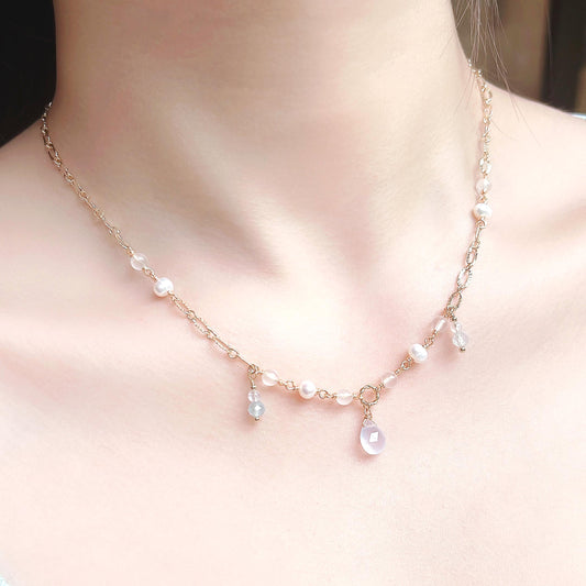 Blue Chalcedony Moonstone Aquamarine Freshwater Pearl 14K Gold Filled NecklaceRegular price HK$330.00Regular priceUnit price / per-