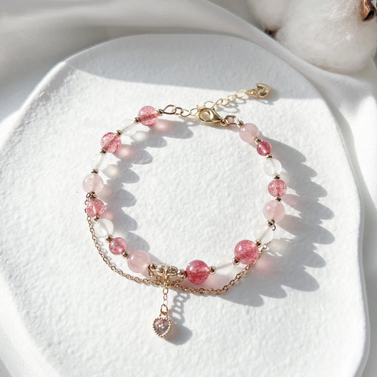 Rhodochrosite strawberry crystal moonstone freshwater pearl 14K gold-filled double layer braceletRegular price From HK$355.00Regular priceUnit price / per-