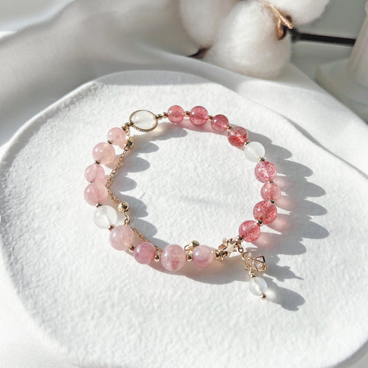 Rose Quartz Strawberry Quartz Moonstone 14k Gold Filled BraceletRegular price From HK$384.00Regular priceUnit price / per-