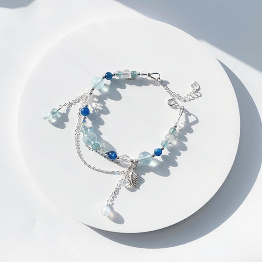 Aquamarine Sapphire Blue Phosphorus Moonstone Diamond Cut White Crystal S925 Sterling Silver BraceletRegular price From HK$450.00Regular priceUnit price / per-