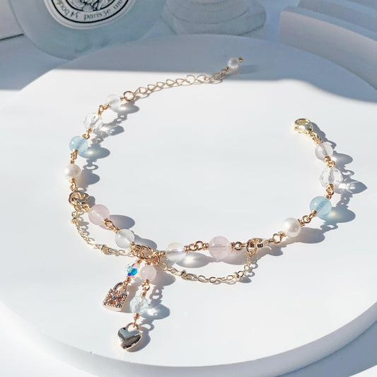 Aquamarine pink crystal citrine diamond-cut white crystal freshwater pearl 14K gold-filled double layer braceletRegular price From HK$387.00Regular priceUnit price / per-