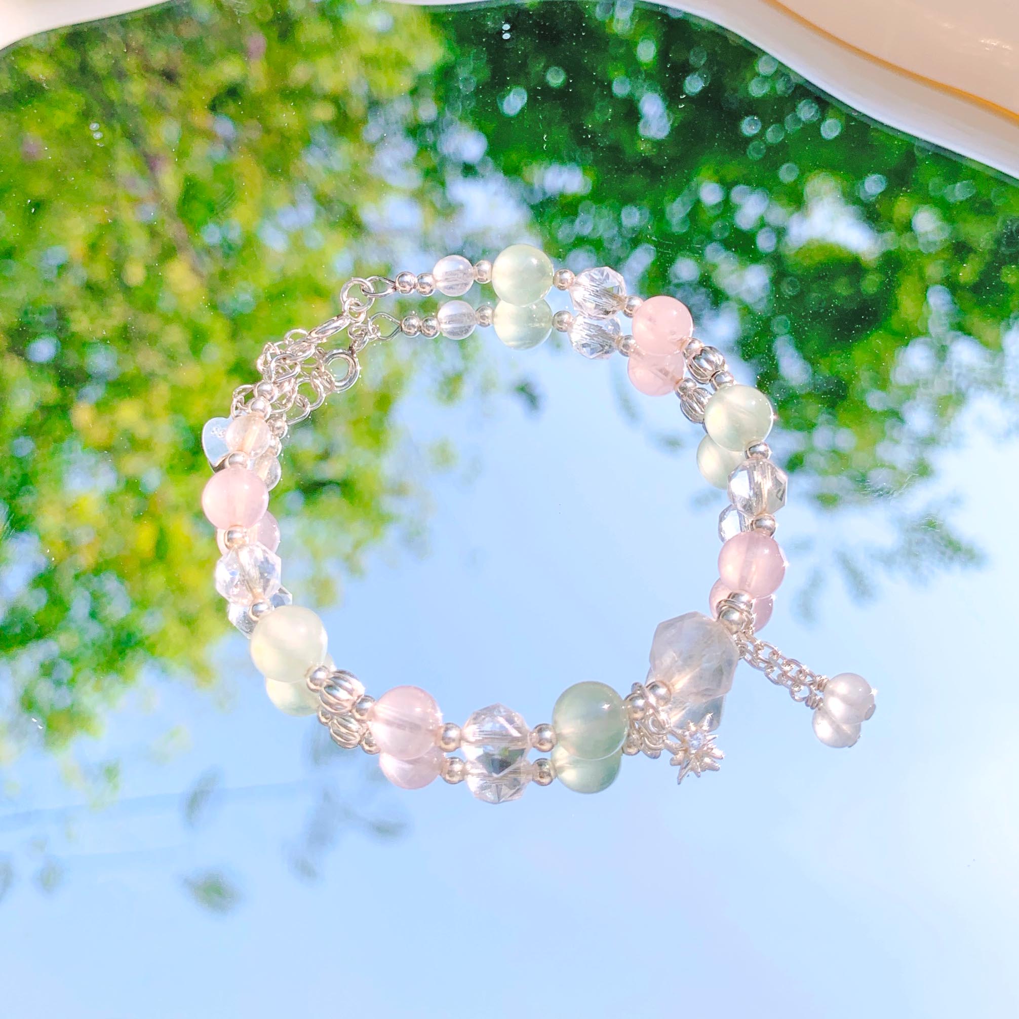 ✦鑽切月光石 約 8.5 mm✦葡萄石 約 7 mm✦粉晶 約 6.5 mm✦鑽切白水晶 約 6.5 mm✦月光石 約 4.5 mm✦S925純銀&鋯石鍊飾